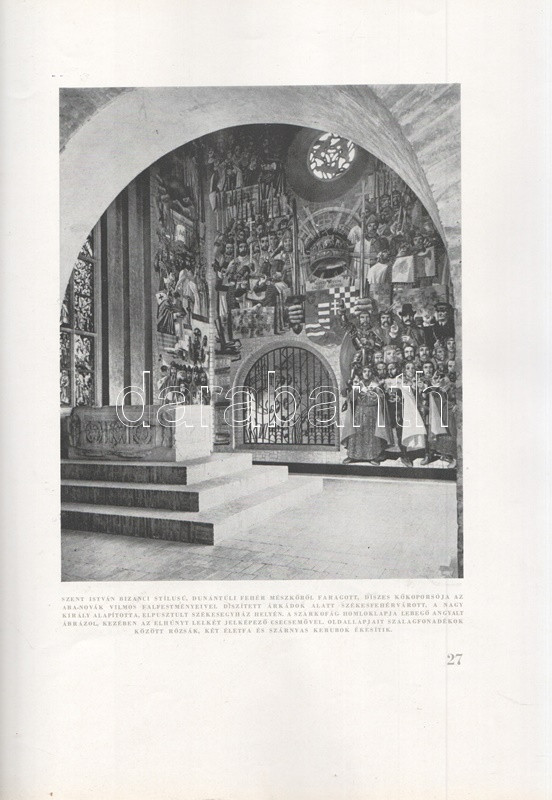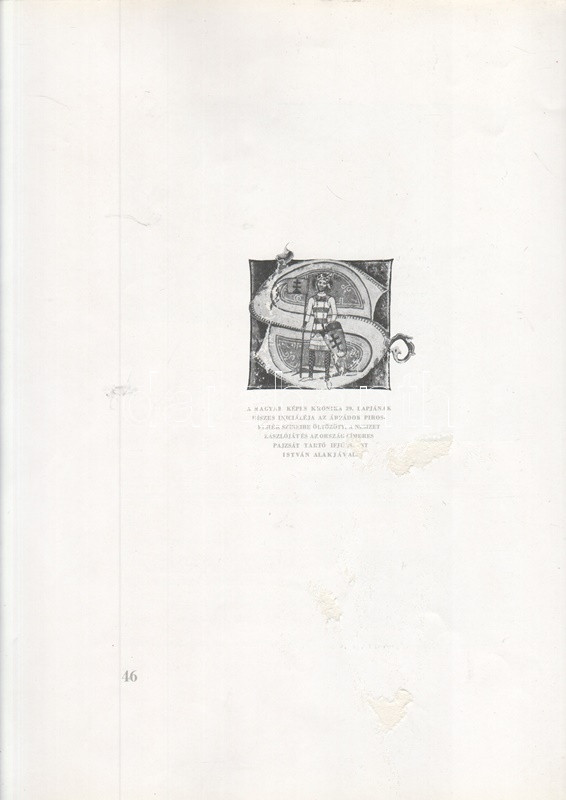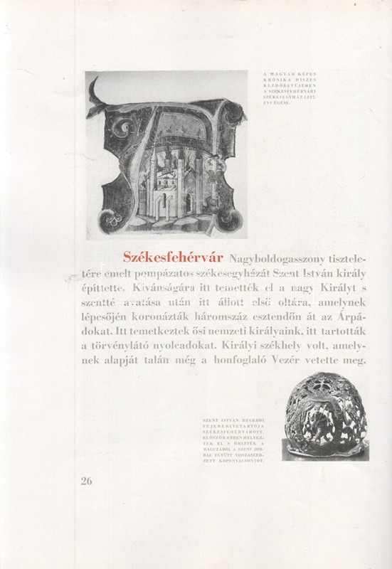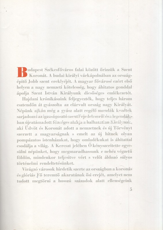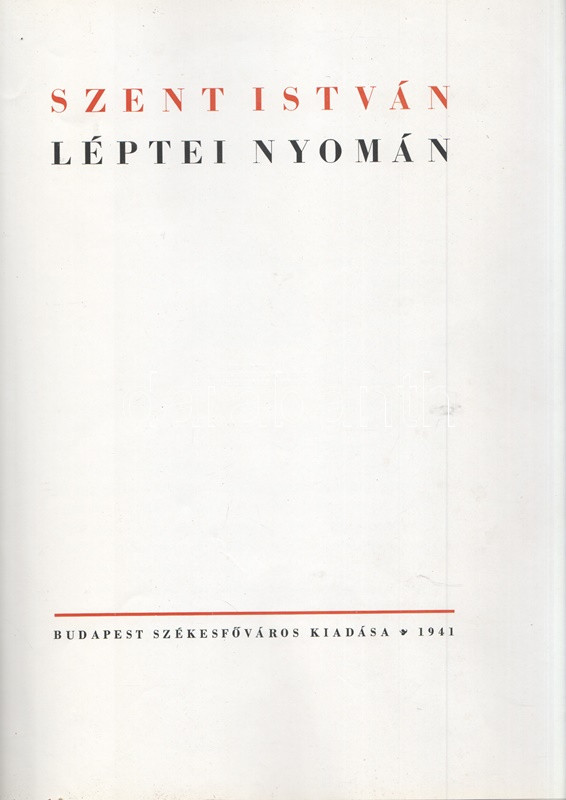 Szent István léptei nyomán. Budapest, 1941. Budapest székesfőváros kiadása (Budapest székesfőváros házinyomdája). 46 + [2] p. Egyetlen kiadás. Kolofon: ,,Hódolva első koronás királyunk szent emlékezetének, Budapest székesfőváros bocsátotta ki ezt a házinyomdájában, 1941. Szent István napjára készült emlékkönyvet. Felelős kiadója Péczely Béla. Címlapját tervezte K. Lukáts Kató iparművész. Összeállította Ujházy György író." Az oldalszámozáson belül számos szövegközti felvétellel illusztrált emlékkiadvány budapesti és vidéki felvételekkel tiszteleg az államalapító műve előtt, a Szent Jobb-körmenet, a Korona, egyes budapesti emlékhelyek és a vidék számos bazilikájának és katolikus emlékhelyeinek képes és írásos anyagával. Egyes oldalakon apró sérülések. Fűzve, illusztrált kiadói borítóban. Jó példány.