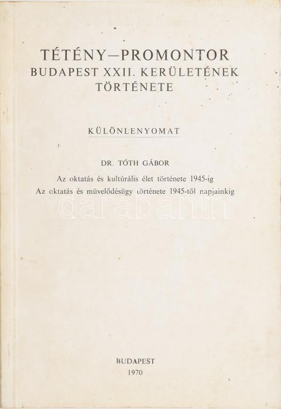 Tétény-Promontor. Bp. XXII. kerületének története. Szerk.: Joó Ernő, Dr. Tóth Gábor, Tóth Sándor. Bp., 1970, Budapest Főváros XXII. Kerületi Tanács VB. Kiadói papírkötésben