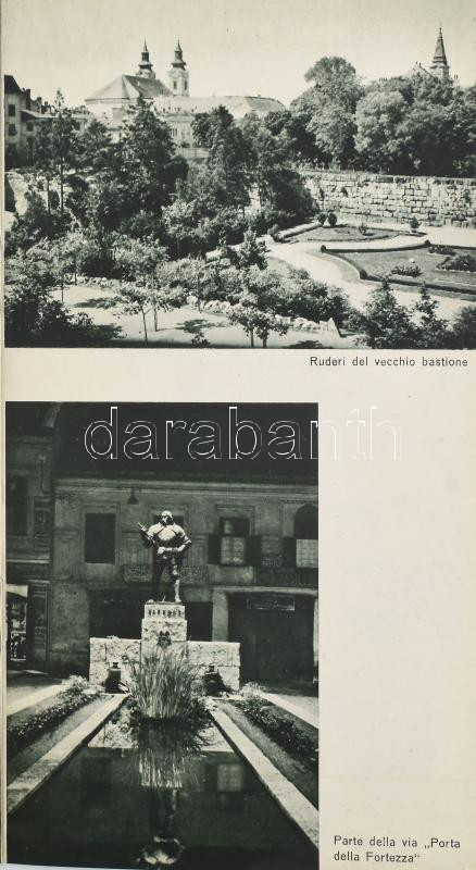 Leírás: cca 1940 Székesfehérvár utazási prospektus fekete-fehér fotókkal, olasz nyelven. A fényképek Tóth Károly székesfehérvári műtermében készültek.