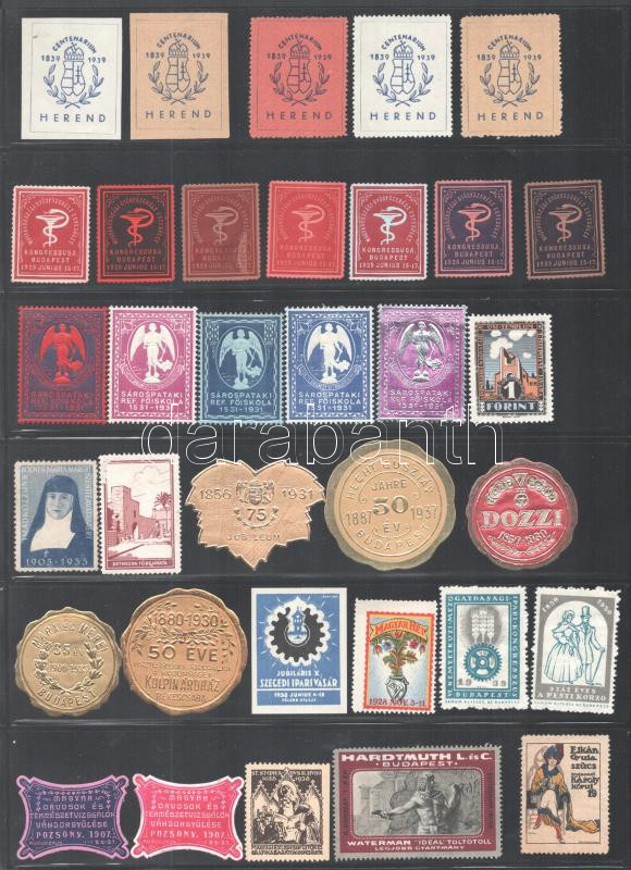 Leírás: Régi levélzáró tétel nagyméretű berakólap 2 oldalán, közte Hadifénykép Kiállítás, 400 éves a Reformáció, Szent István év.