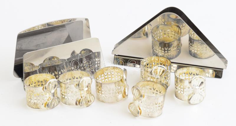 Leírás: 6 darab fém szalvétagyűrű és 2 darab fém szalvétatartó