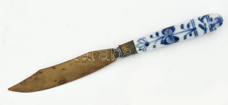 Leírás: Antik bécsi levélbontó kés, porcelán nyéllel, jelzett, h: 15,5 cm