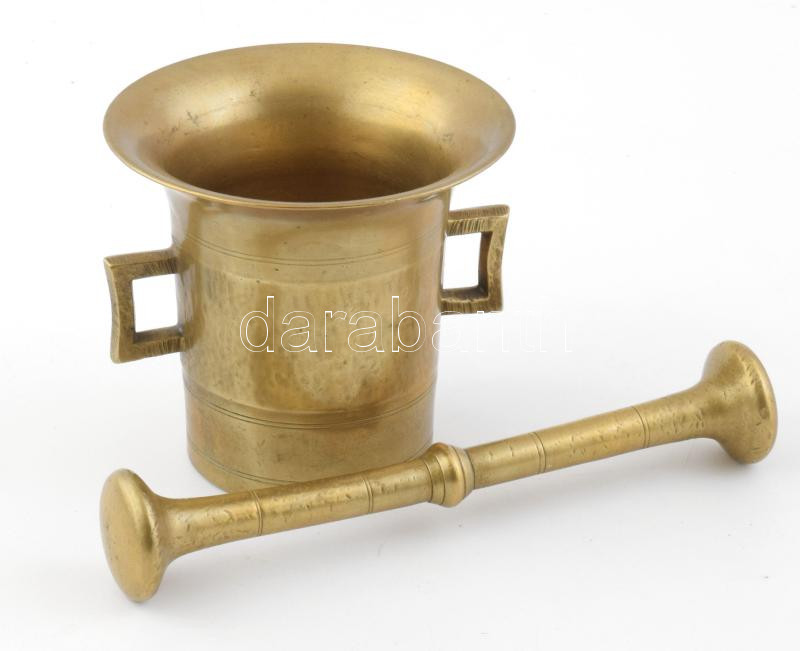 Bronz mozsár törővel, m: 13 cm, törő h: 24 cm https://www.darabanth.com/hu/473-Gyorsarveres/473.0/Mutargy-papirregiseg-egyeb/Bolhapiac~500016/Bronz-mozsar-torovel-m-13-cm-toro-h-24-cm~II3202896