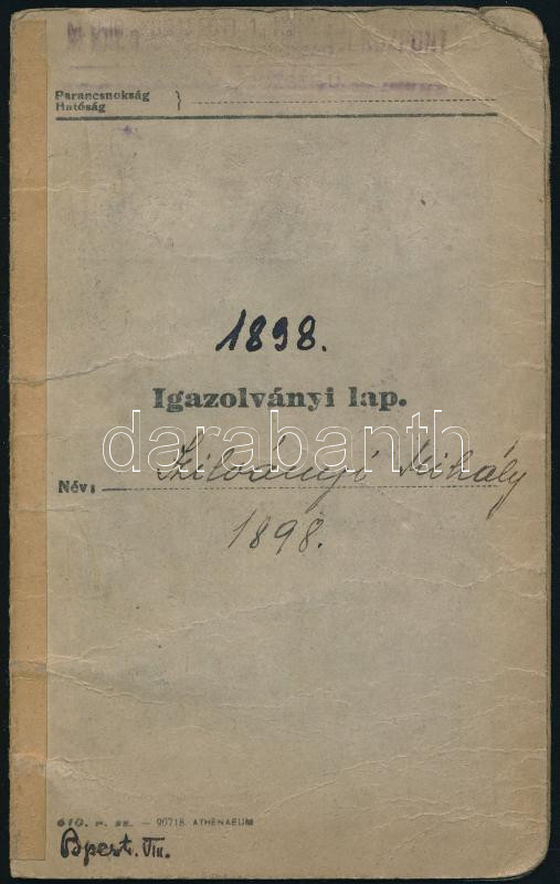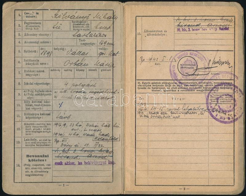 1942 Katonai igazolványi lap tartalékos honvéd részére https://www.darabanth.com/hu/473-Gyorsarveres/473.0/Mutargy-papirregiseg-egyeb/Militaria~1000009/1942-Katonai-igazolvanyi-lap-tartalekos-honved-reszere~II3204145