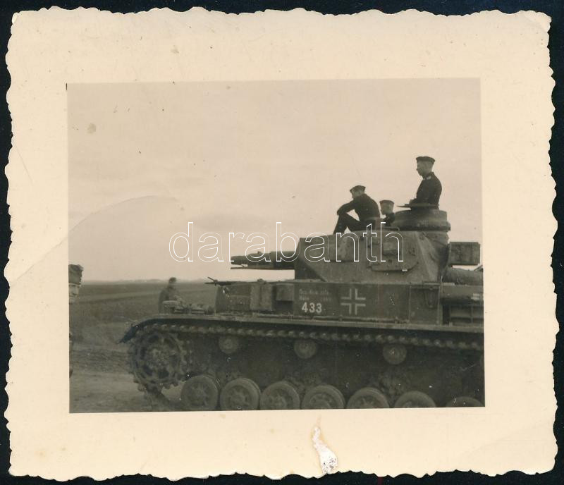 Leírás: cca 1942 Német Panzer IV Ausf. F (F1) harckocsi (7,5 cm KwK 37 L/24 típusú, rövid csövű löveggel), fotó, kis felületi törésnyommal, 7x6 cm