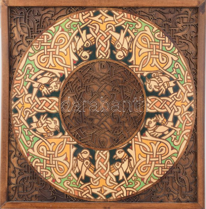 Falikép. Szerbia, faragott festett fa, középkori minta másolat. 38x38 cm A kép Áder János köztársasági elnök tulajdonában állt, A köztársasági elnök által aláírt tanúsítvánnyal.