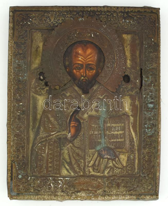 Ikon - Szent Miklós. Orosz, cca 19. sz. közepe, fa, sérült rézlemez ok... https://www.darabanth.com/hu/473-Gyorsarveres/473.0/Mutargy-papirregiseg-egyeb/Mutargyak-antikvitas~500009/Ikon-Szent-Miklos-Orosz-cca-19-sz-kozepe-fa-serult-rezlemez-oklad-vaslemez-gloriava~II3207846