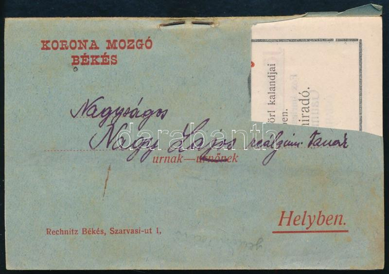 1926 Békés, a Korona Mozgó augusztus havi műsora, mozi műsorfüzet, tűz... https://www.darabanth.com/hu/473-Gyorsarveres/473.0/Mutargy-papirregiseg-egyeb/Nyomtatvanyok~1000013/1926-Bekes-a-Korona-Mozgo-augusztus-havi-musora-mozi-musorfuzet-tuzott-papirkotes-a-h~II3209648