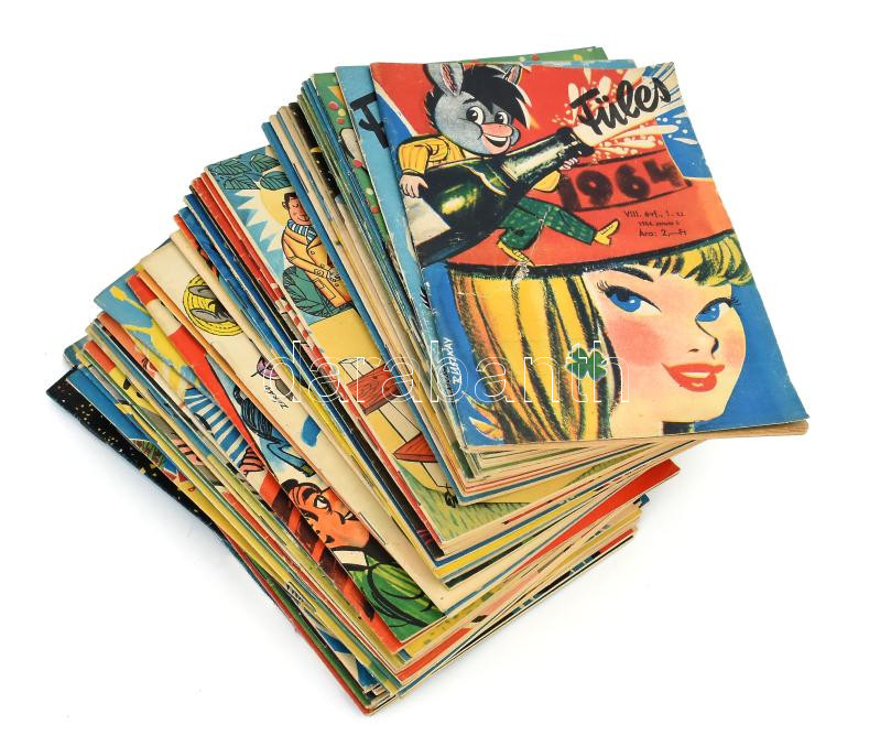 Leírás: 1964 Füles magazin teljes évfolyama, VIII. évf. 1-52. sz. Kiadói tűzött papírkötés, nagyrészt jó állapotban.