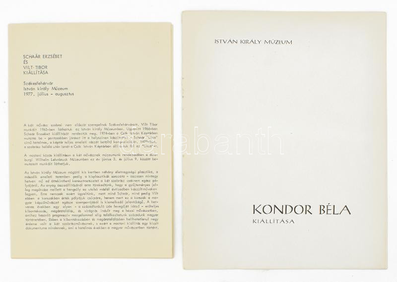 Leírás: 2 darab műtárgyjegyzék Kondor Béla 1965-ös és Schár Erzsébet - Vilt Tibor 1977-es kiállításáról