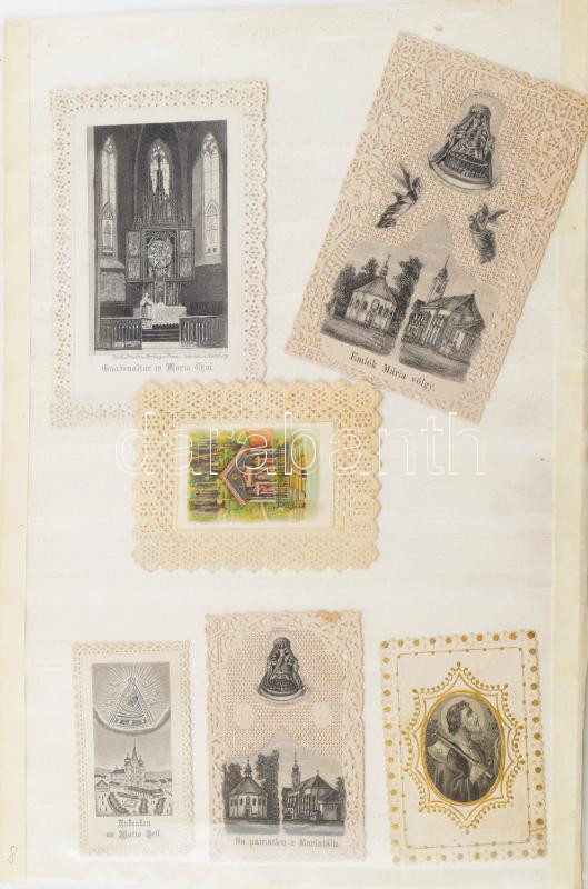 Leírás: cca 1900 Csipkés szentkép gyűjtemény 6 db, jó állapotban