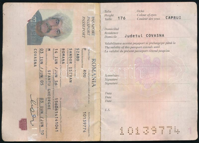 2005 Román útlevél magyar beragasztott igazolásokkal https://www.darabanth.com/hu/473-Gyorsarveres/473.0/Mutargy-papirregiseg-egyeb/Okmanyok~500022/2005-Roman-utlevel-magyar-beragasztott-igazolasokkal~II3204158