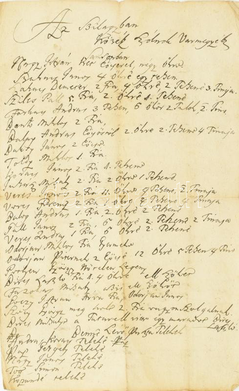 Leírás: cca 1800 Szilágy, közép-Szolnok vármegyei urbárium összeírás