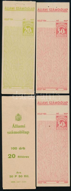 Leírás: cca 1940 4 db állami számolólap, vízjeles