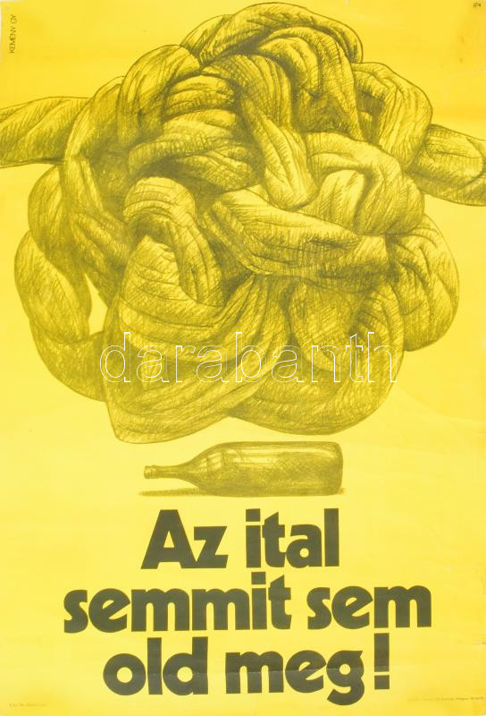 1971 Kemény György (1936- ): ,,Az ital semmit sem old meg!" Alkoholellenes plakát. Bp., Zrínyi-ny., kisebb lapszéli sérülésekkel, feltekerve, 82x55,5 cm