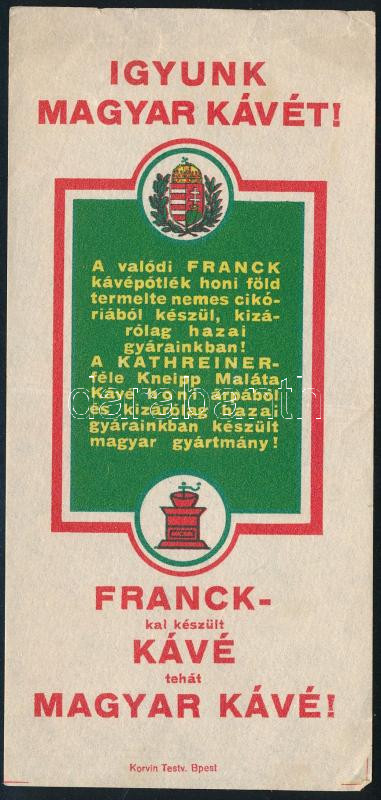 Franck kávé számolócédula. https://www.darabanth.com/hu/473-Gyorsarveres/473.0/Mutargy-papirregiseg-egyeb/Reklam~1000001/Franck-kave-szamolocedula~II3191174