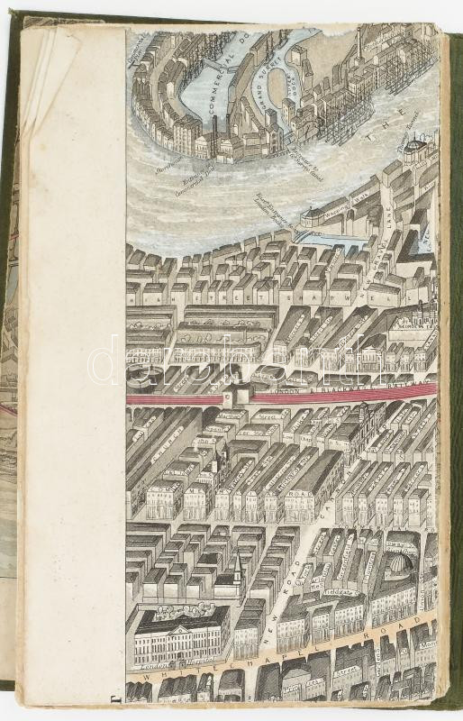 Leírás: 1859 The balloon view of London, The public buildings, parks, palaces, squeres, streets, railway stations & c., erősen szakadt, 68×115 cm