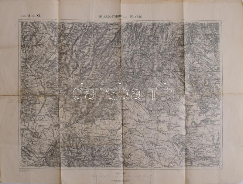 Leírás: cca 1901 Balassagyarmat és Ipolyság környékének katonai térképe, 1 : 75.000, K. u. k. militär-geographisches Institut, kissé viseltes, 47,5x61 cm