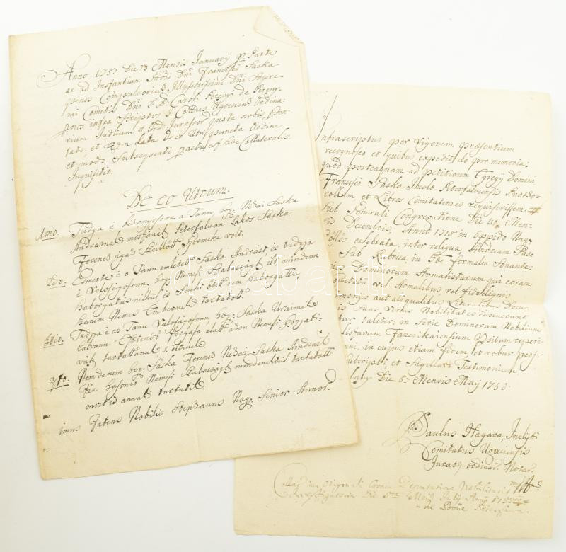 1750 A péterfalvi nemes Saska család birtokaival kapcsolatos két oklev... https://www.darabanth.com/hu/473-Gyorsarveres/473.0/Mutargy-papirregiseg-egyeb/Tortenelmi-dokumentumok-keziratok-erdekessegek~500023/1750-A-peterfalvi-nemes-Saska-csalad-birtokaival-kapcsolatos-ket-oklevel-Forgolanyban-nagyszo~II3213332