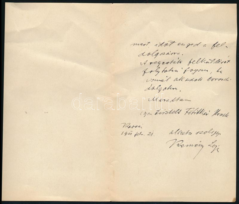1911 Kemény Lajos (1859-1927) levéltáros kassai helytörténész autográf... https://www.darabanth.com/hu/473-Gyorsarveres/473.0/Mutargy-papirregiseg-egyeb/Tortenelmi-dokumentumok-keziratok-erdekessegek~500023/1911-Kemeny-Lajos-1859-1927-leveltaros-kassai-helytortenesz-autograf-levele-Ket-beirt-oldal~II3205858