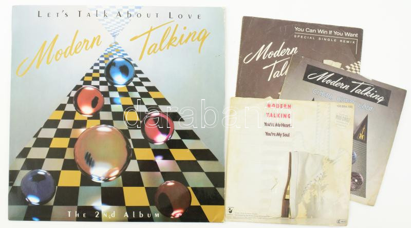 Leírás: Modern Talking 4 darab bakelitlemez: Let's talk about love, You're my heart, You're my Soul, Cheri, Cheri Lady, You can win if you want.