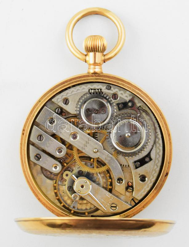 Leírás: 14k arany (Au) zsebóra dupla fedeles, anker járatos br 73 g d: 45 mm