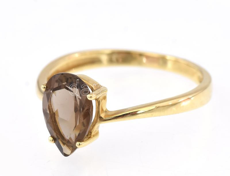 Leírás: Arany (Au) 14K gyűrű füstkvarccal, jelzett, méret: 52, bruttó: 1,8 g