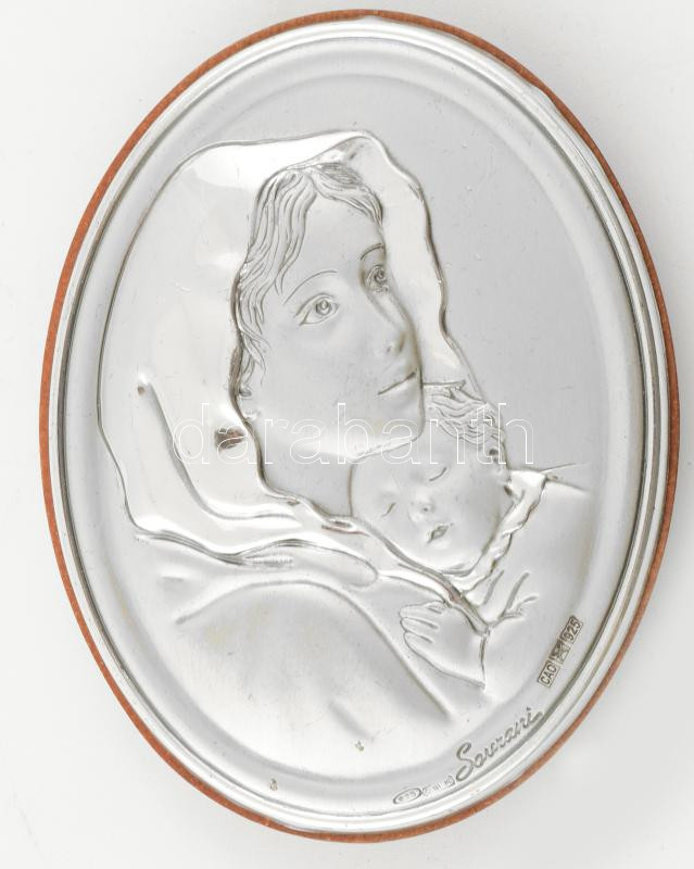 Leírás: Ezüst (Ag) plasztikus dísz. Fa alapon. Jelzett 9x7 cm