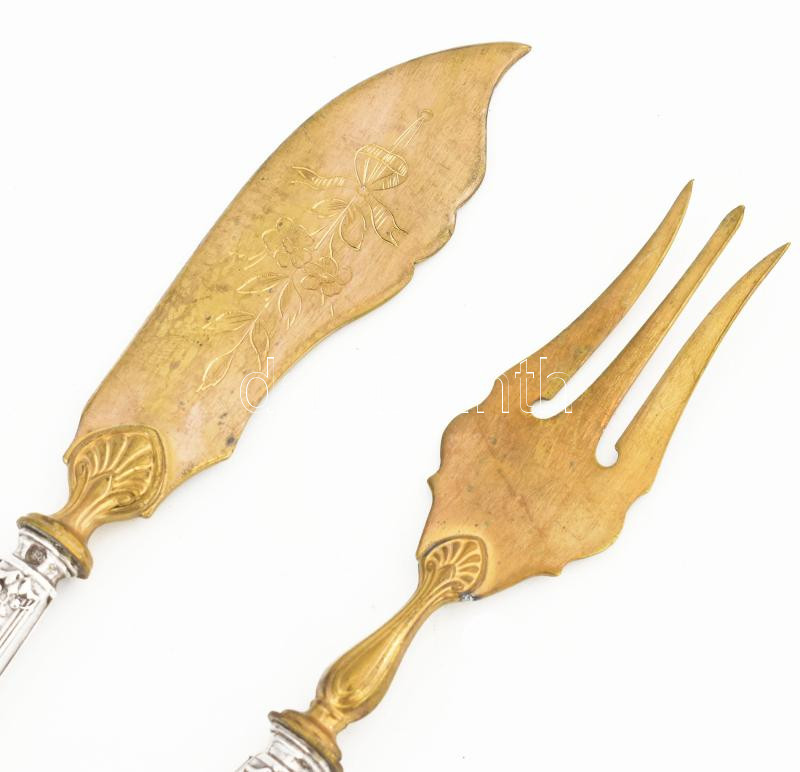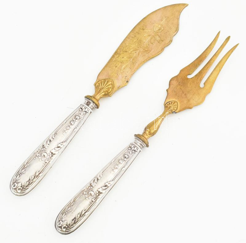 Leírás: Ezüst(Ag) halas készlet, jelzett, h: 19 cm, bruttó: 90,4 g