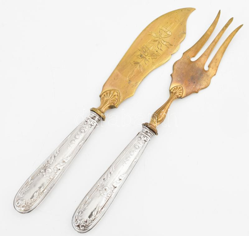 Leírás: Ezüst(Ag) halas készlet, jelzett, h: 19 cm, bruttó: 91,3 g