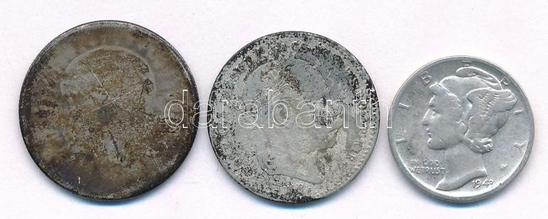 3db-os vegyes Ag érmetétel, közte Amerikai Egyesült Államok 1943. 1d (10c) Ag "Mercury" + Lengyelország 1932. 2Zl Ag + 1870KB 20kr Ag "Váltó Pénz" T:VF,F patina