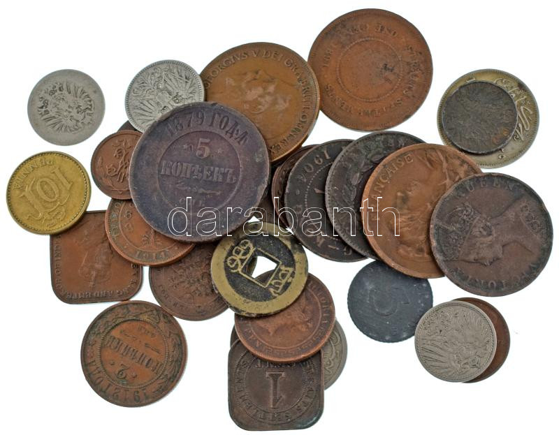 ~1870-1960. 33db-os vegyes fém- és bronzpénz tétel klf országokból, közte orosz, kínai, indiai pénzek T:vegyes