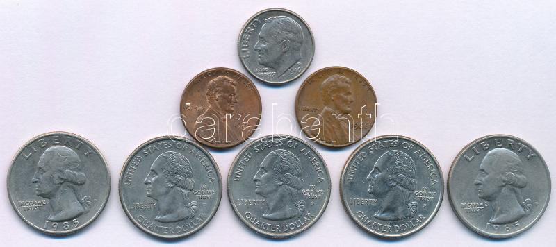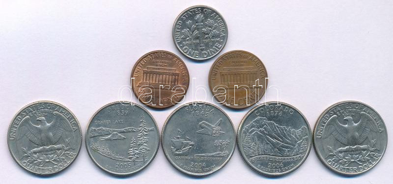 Leírás: Amerikai Egyesült Államok 1966-1986. 1c bronz "Lincoln" (2xklf) + 1985P 25c (2x) + 1996P 10c (1d) "Roosevelt" + 2004-2006. 25c "Szövetségi Államok" (3xklf) T:XF,VF