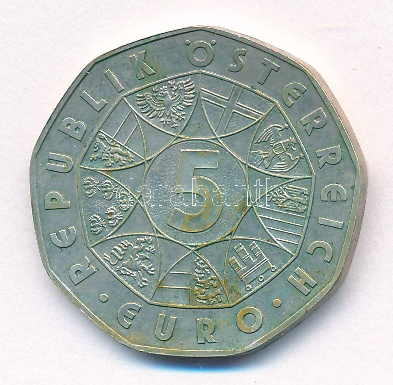 Austria 2007. 5 Euro Ag "850th anniversary - Mariazell Basilica" C:AU,XF patina, spotted