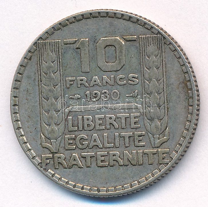 France 1930. 10 Francs Ag C:V... https://www.darabanth.com/hu/473-Gyorsarveres/473.0/Numizmatika/Kulfoldi-fem-es-ezustpenzek~1500016/Franciaorszag-1930-10Fr-Ag-TVF-patina-France-1930-10-Francs-Ag-CVF-patina-Krause-KM23878~II3206275