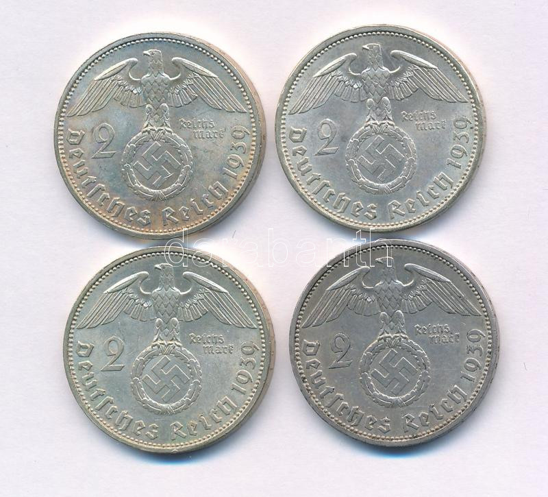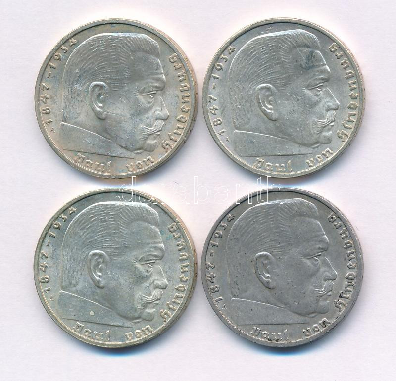 Leírás: Német Harmadik Birodalom 1939A 2M Ag "Hindenburg" (4x) T:AU,XF patina