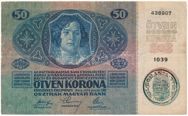 1914. 50K fekete "ROMANIA TIMBRU SPECIAL" felülbélyegzéssel ... https://www.darabanth.com/hu/473-Gyorsarveres/473.0/Numizmatika/Magyar-bankjegyek~1500008/1914-50K-fekete-ROMANIA-TIMBRU-SPECIAL-felulbelyegzessel-TF-Adamo-K24M~II3202720