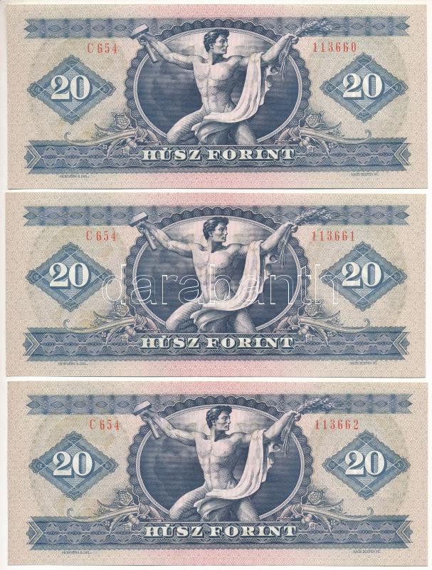 Leírás: 1975. 20Ft (3x) sorszámkövető "C 654 113660 - C 654 113662" T:UNC,AU