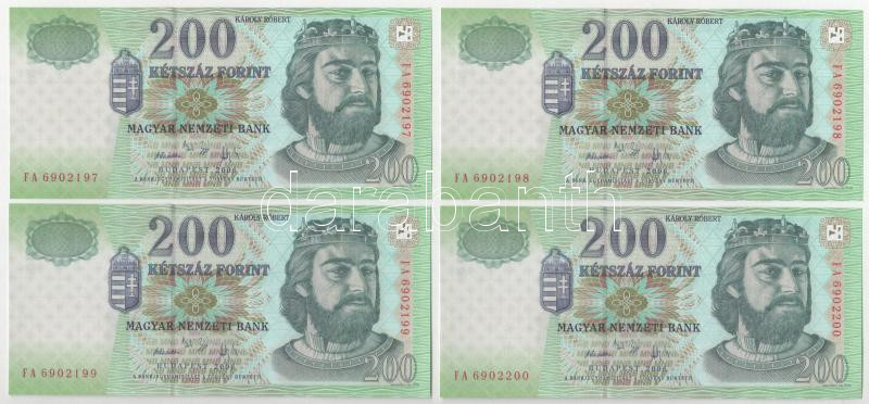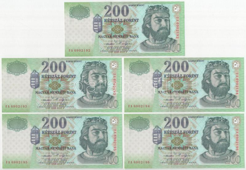 Leírás: 2006. 200Ft (9x) sorszámkövetők "FA 6902192 - FA 6902200" T:UNC