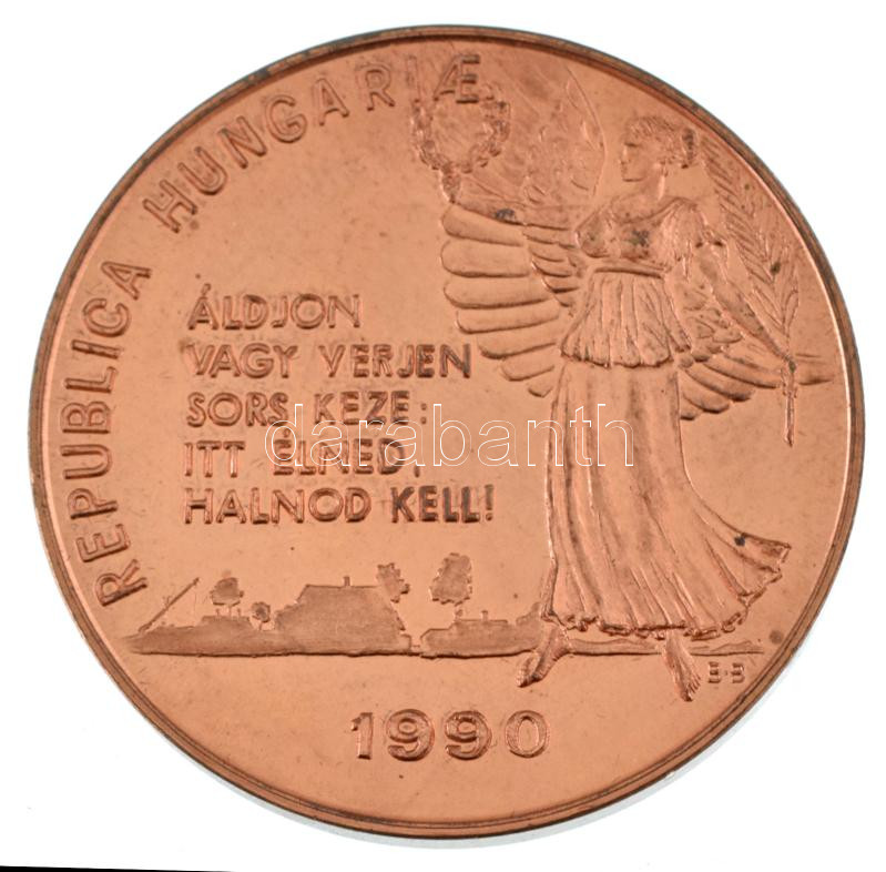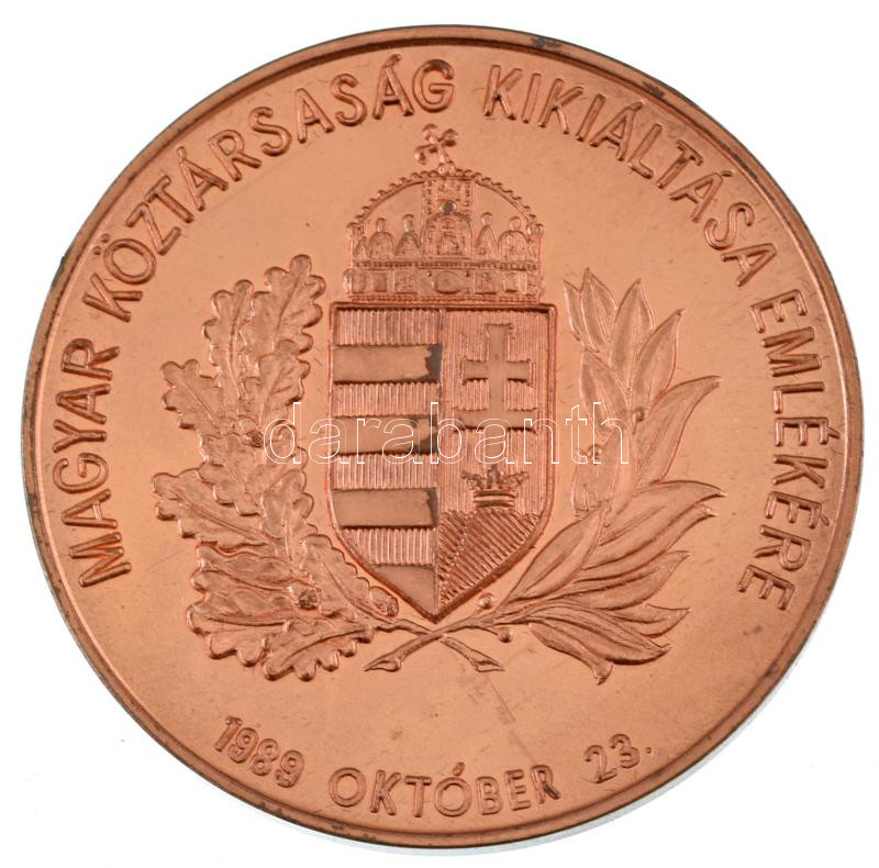 Bajnok Béla (1937-2020) / Szabó Géza (1939-) 1990. "Magyar Köztársaság kikiáltása emlékére 1989. október 23. / Republica Hungariae" kétoldalas bronz emlékérem kapszulában (42,5mm) T:AU