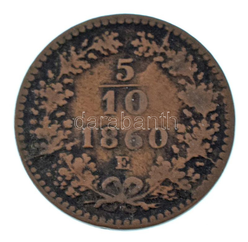 1860E 5/10kr Cu T:F patina Hungary 1860E 5/10 Kreuzer Cu C:F patina Ad... https://www.darabanth.com/hu/473-Gyorsarveres/473.0/Numizmatika/Magyar-es-magyar-verdejelu-fem-es-ezustpenzek~1500009/1860E-510kr-Cu-TF-patina-Hungary-1860E-510-Kreuzer-Cu-CF-patina-Adamo-M3~II3210375