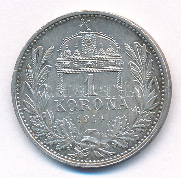 1914KB 1K Ag "Ferenc József" T:AU Adamo K5.1 https://www.darabanth.com/hu/473-Gyorsarveres/473.0/Numizmatika/Magyar-es-magyar-verdejelu-fem-es-ezustpenzek~1500009/1914KB-1K-Ag-Ferenc-Jozsef-TAU-Adamo-K51~II3204261