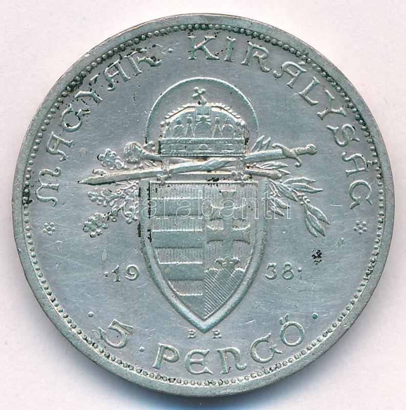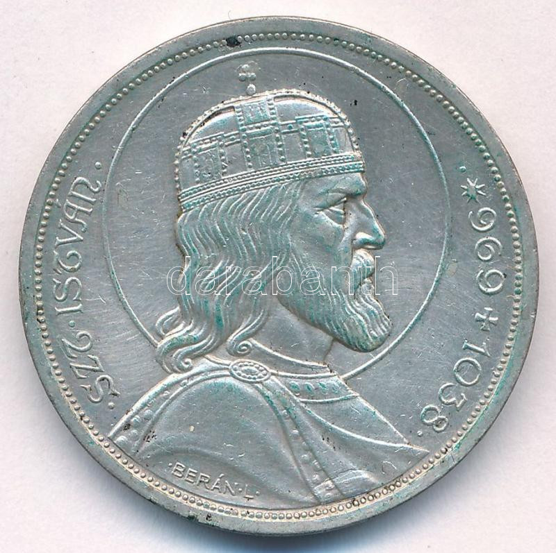 Leírás: 1938. 5P Ag "Szent István" T:XF lakkozva, patina Adamo P8.1
