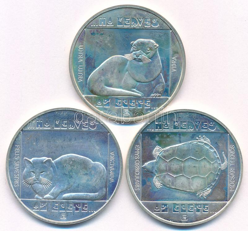 Leírás: 1985. 200Ft Ag (3xklf) "Természetvédelem - Mocsári Teknős, Vadmacska, Vidra" T:UNC,AU patina Adamo EM85; EM86; EM87
