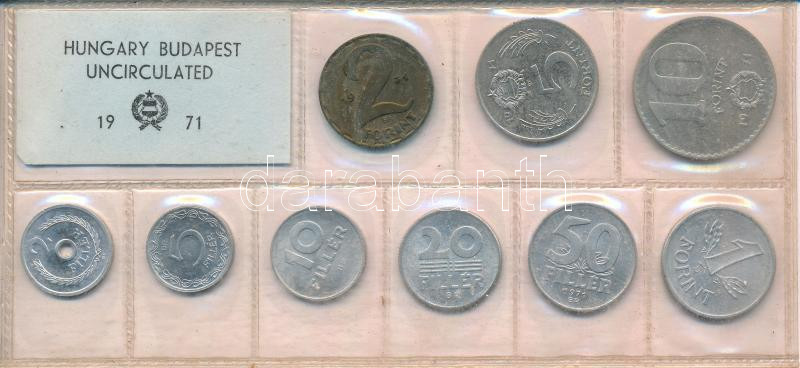 Leírás: 1971. 2f-10Ft (9xklf) érmés forgalmi sor fóliatokban T:UNC patina Adamo FO4