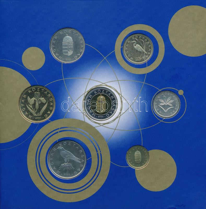 Leírás: 2000. 1Ft-100Ft (7xklf) forgalmi sor szettben + "200Ft Millenium", belső tok ragasztása kissé elengedett T:PP patina Adamo FO33.1