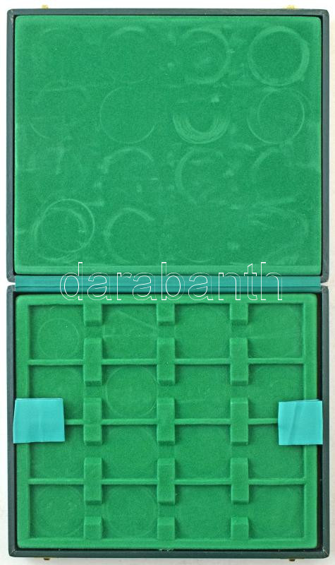 Leírás: "Numismata" feliratú, műbőr érmetartó kazetta kivehető tálcával, összesen 24db 5x5cm-es férőhellyel, használt, szép állapotban (kivehető tálca ragasztása elengedett)