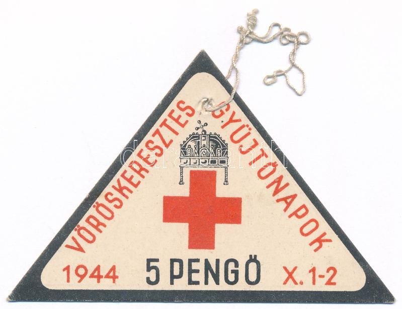 Leírás: 1944. "Vöröskeresztes Gyűjtőnapok 1944. X. 1-2." sorszámozott adományjegy 5P-ről T:AU