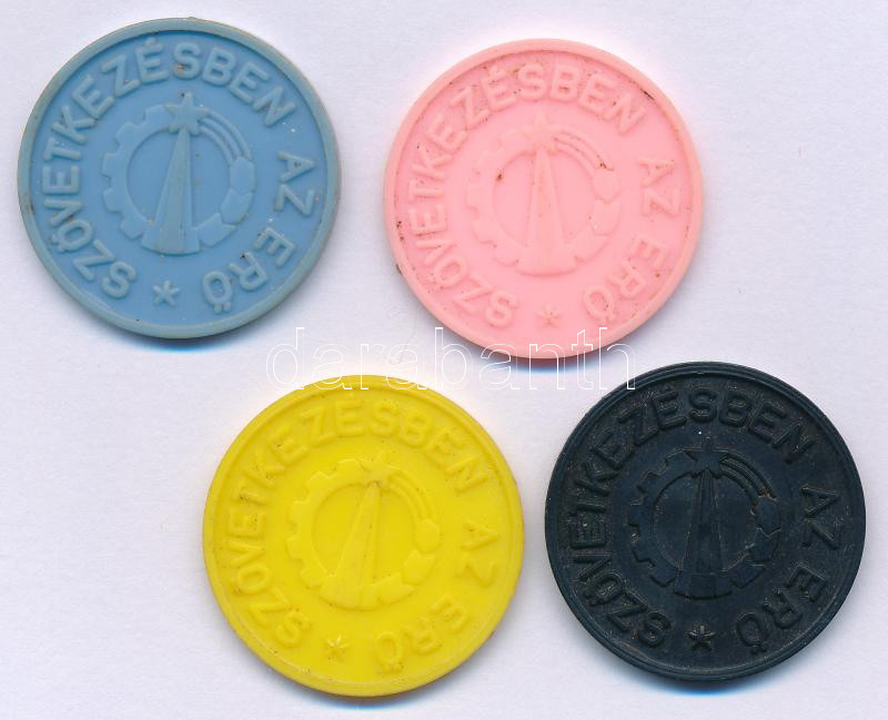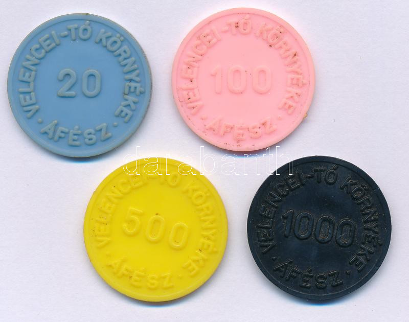 Leírás: ~1980. "Szövetkezésben az erő / ÁFÉSZ - Velencei-tó környéke", "20", "100", "500" és "1000" névértékű műanyag bárca (4xklf) T:AU