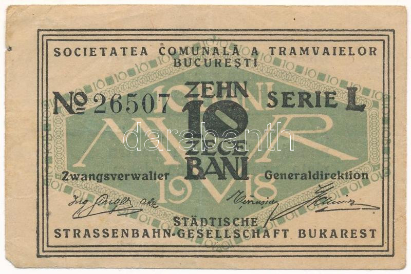 Romania / Bucureşti 1919. 10 Bani "Societatea Comunală a Tramvaielor Bucureşti (Communal Society of Bucharest Tramways)" C:F small missing material